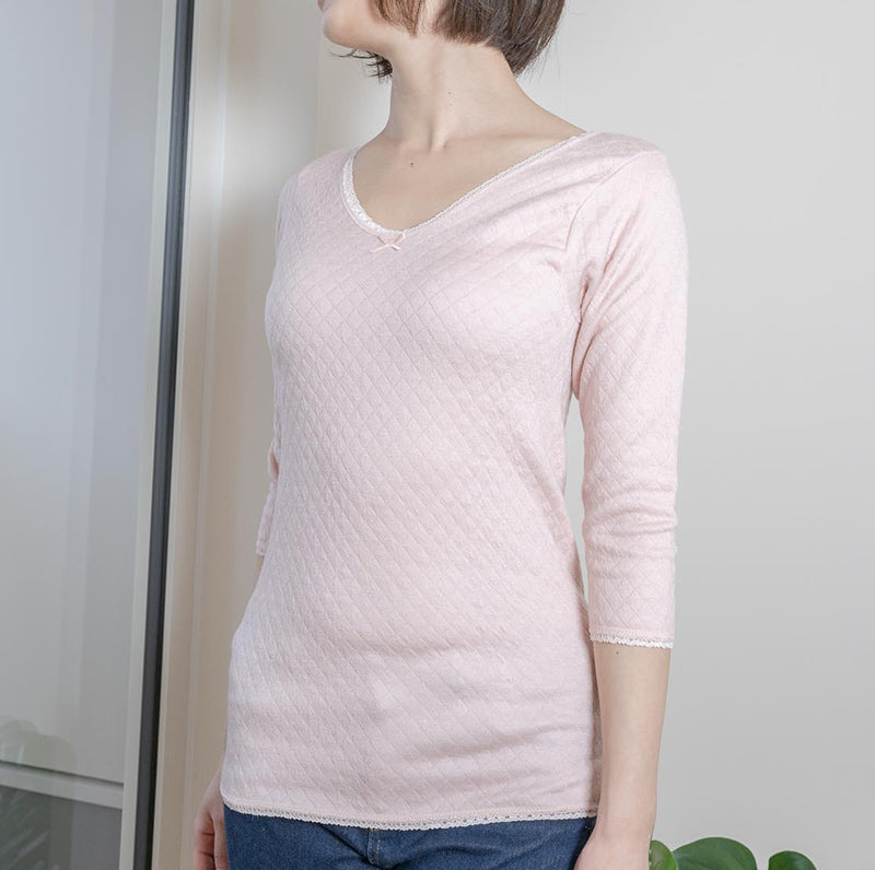 岩盤浴 8分袖キルトレディースインナー | 冷えのお悩み・冷房対策・お腹の冷え