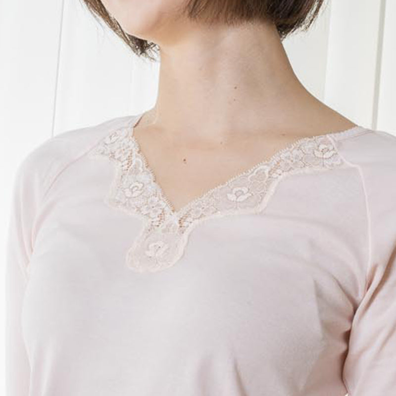 岩盤浴 綿100% 8分袖レディースインナー | 冷えのお悩み・冷房対策・お腹の冷え