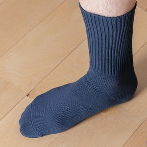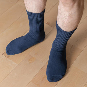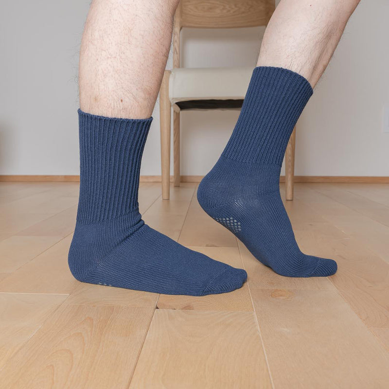 日本製の厚地タイプの靴下の裏側に岩盤浴を付着(健まーる)加工しました。洗濯してもブラックシリカは取れない加工をしておりますので、安心して洗濯も出来ます。
