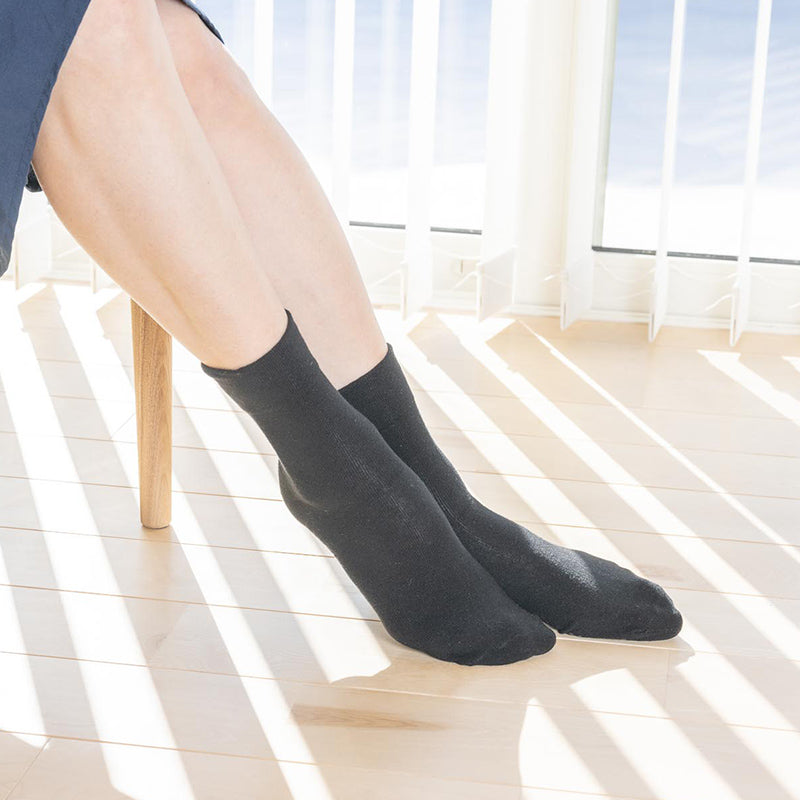 冷え取り、冷え対策に。夏は冷房対策、冬は寒さ対策におすすめ。お風呂上がりの夜用としたり、立ちっぱなしや座りっぱなしのお仕事の方も。防菌・防臭!吸湿性や通気性が良く肌に優しい靴下です。