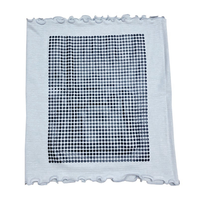 ※ 健まーる加工は天然鉱石のブラックシリカを付着加工する名称です。業務用のアイロンで熱処理する工程で、製品にアイロン跡がどうしてもついてしまいます。