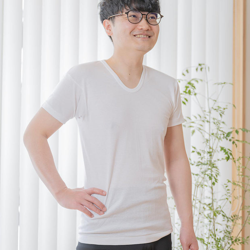 岩盤浴 半袖U首 メンズインナー | 冷えのお悩み・冷房対策・お腹の冷え