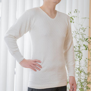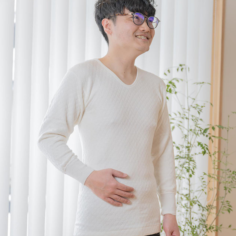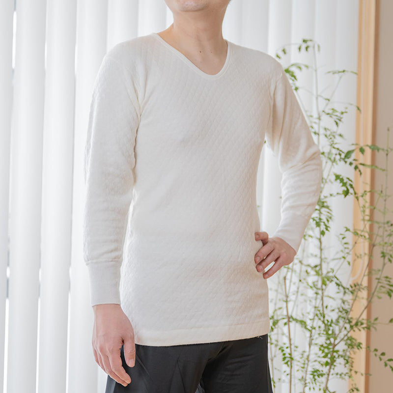 岩盤浴 ニットキルト長袖U首 メンズインナー | 冷えのお悩み・冷房対策・関節の痛み