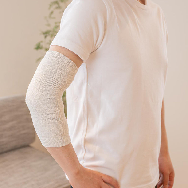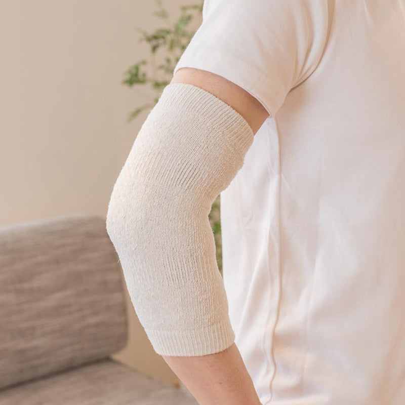 ひじのつらい冷えにも岩盤浴の様にゆっくりと温める。シルクと遠赤外線で悩み解決!