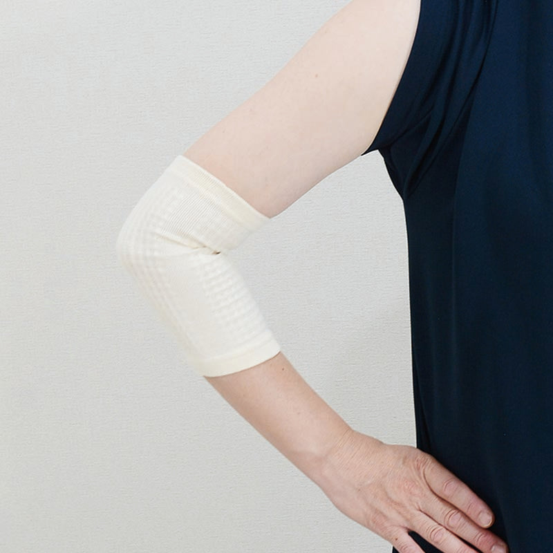 ひじのつらい冷えも岩盤浴の様にゆっくりと温める。遠赤外線で悩み解決!お風呂上がりのようなポカポカ感が続きます!よく伸びる素材で楽ちん♪